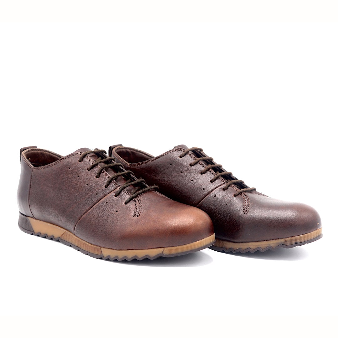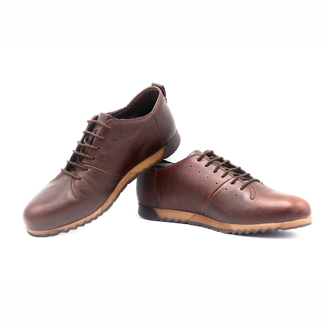 خرید کفش کد 230 کتانی قهوه ای با کیفیت چرم طبیعی و طراحی کاربردی