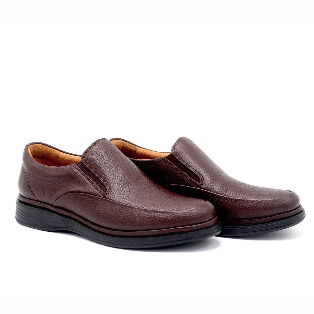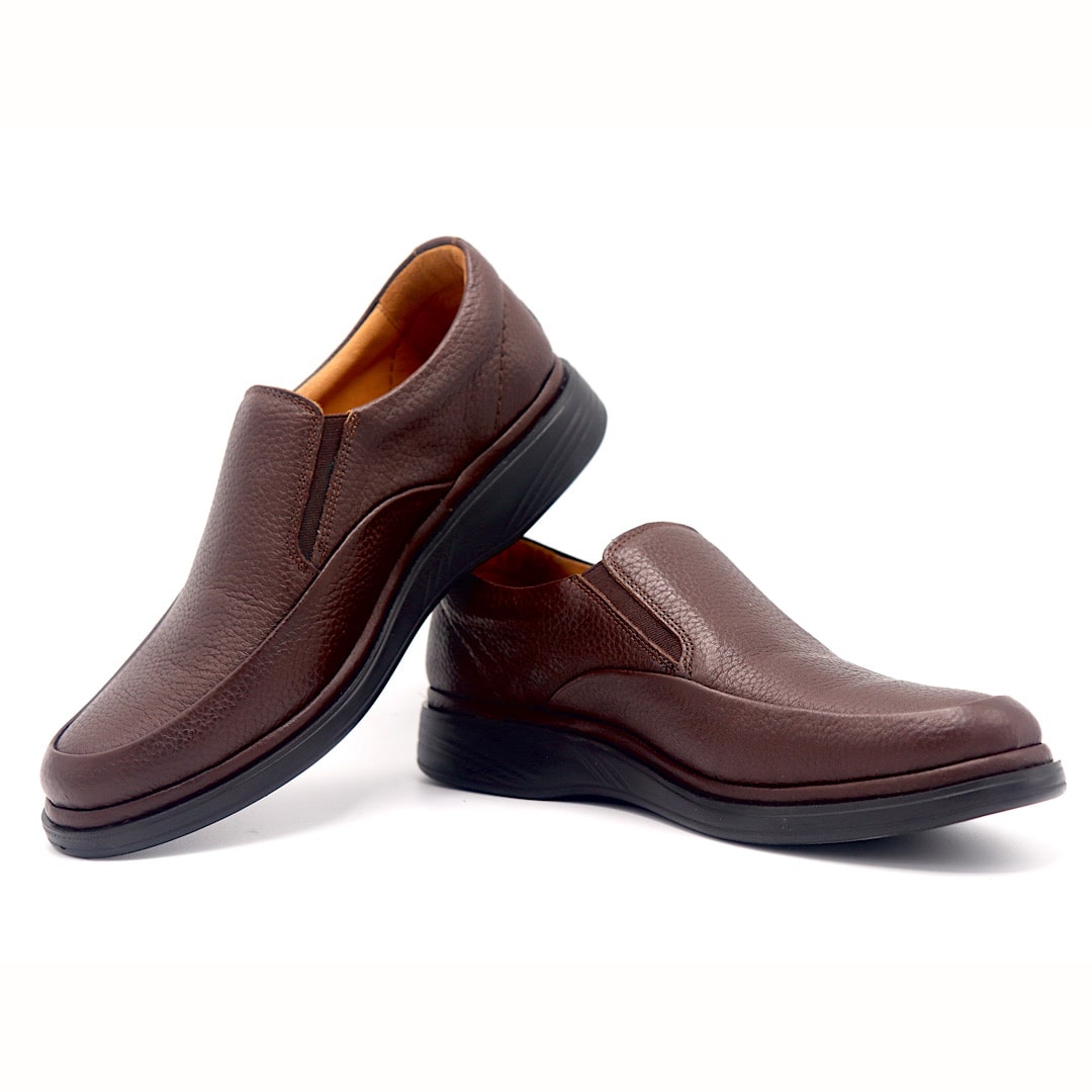 خرید کفش چرم مردانه با بهترین کیفیت و قیمت، کفش کد 280 بی بند قهوه ای را انتخاب کنید.