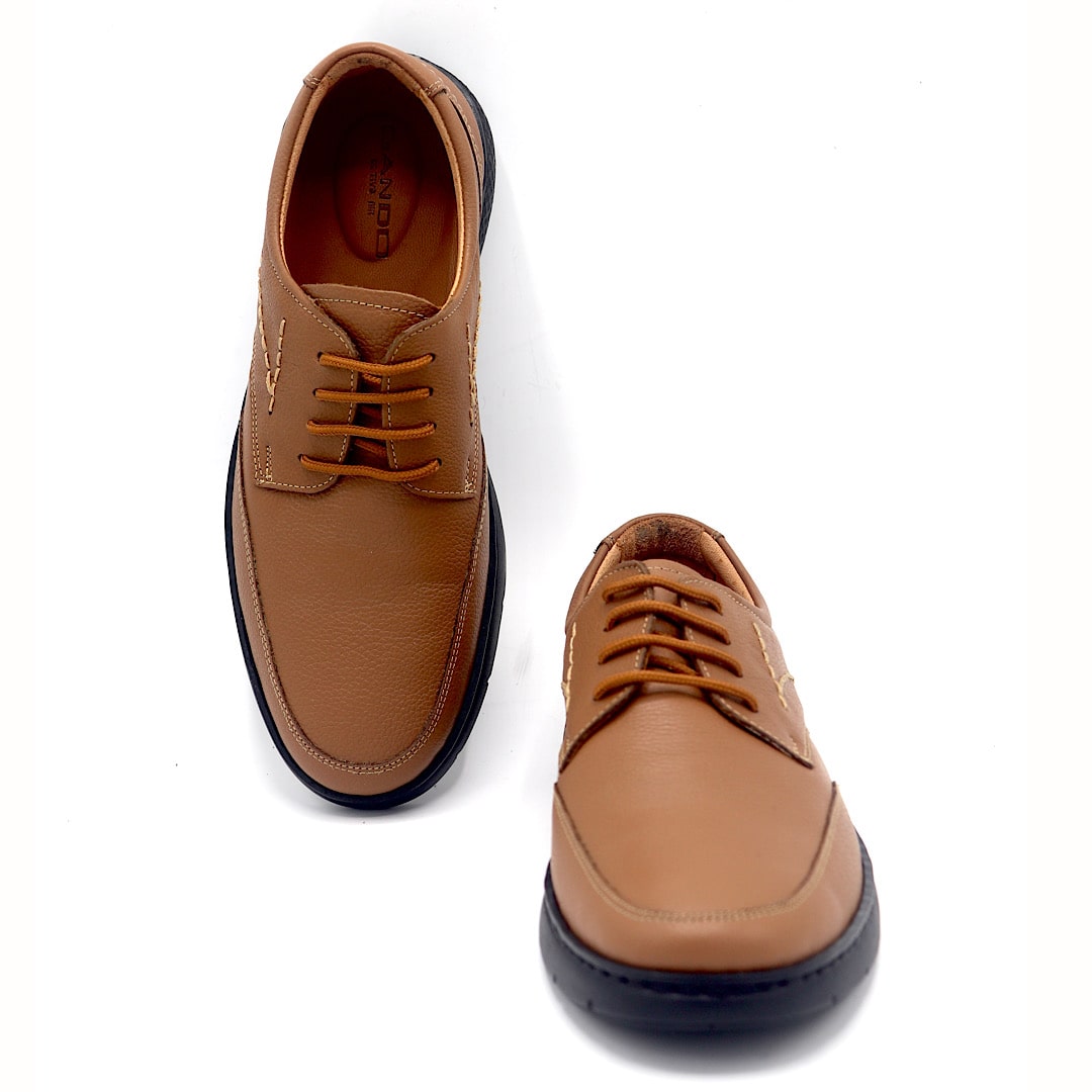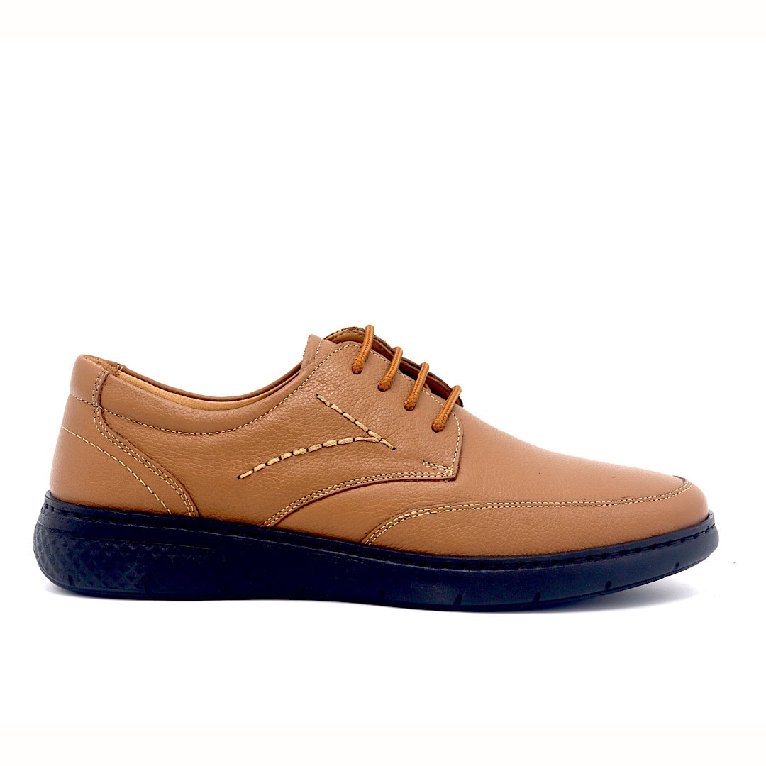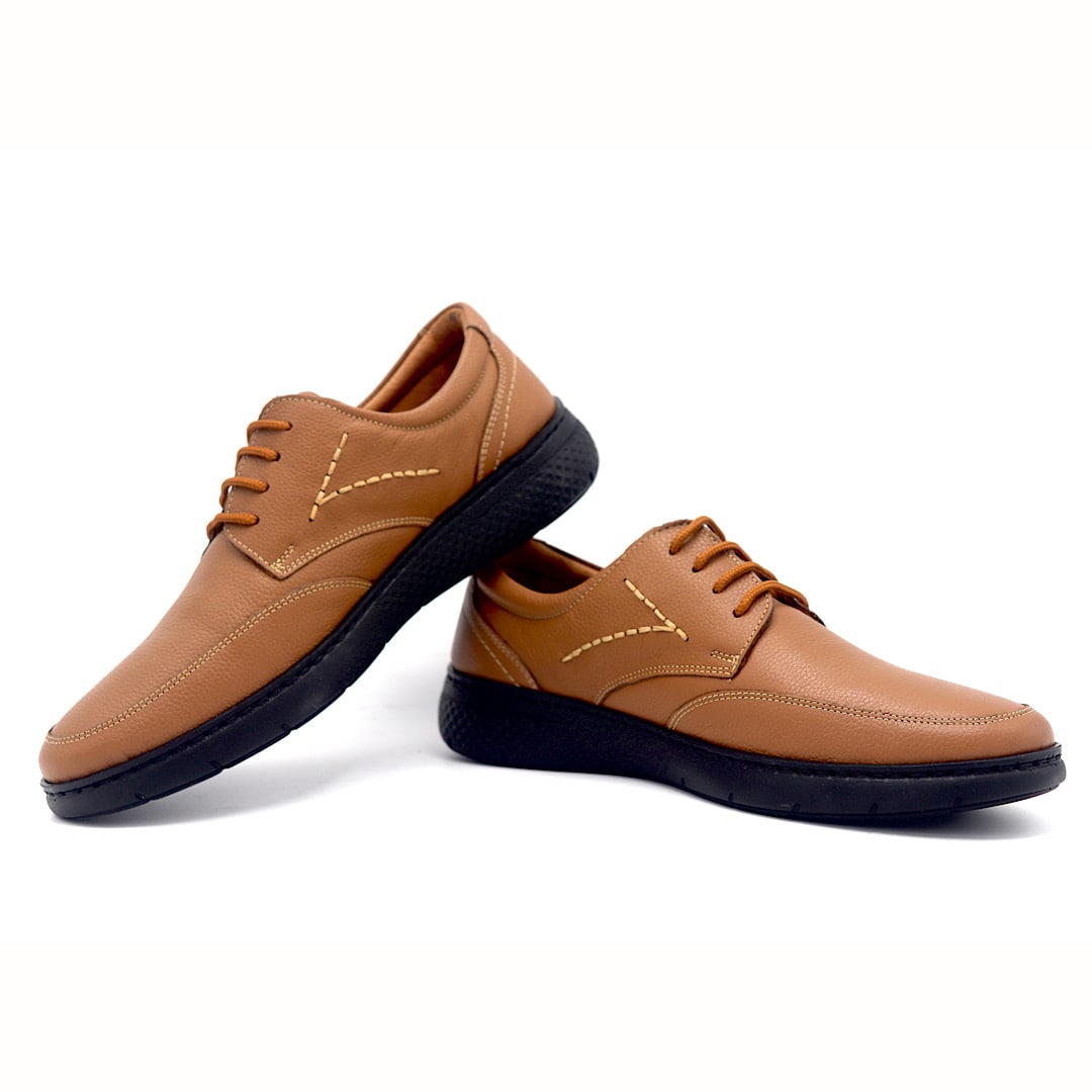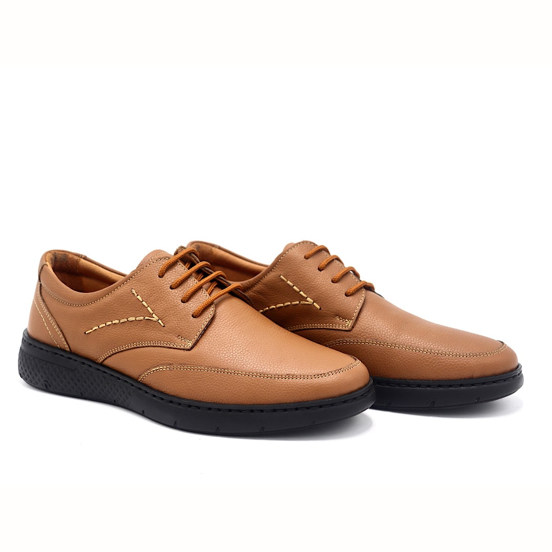 خرید کفش کد 362 بندی عسلی با رویه چرم طبیعی و طراحی کلاسیک
