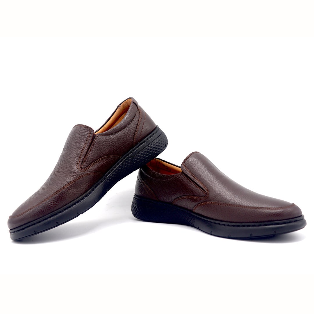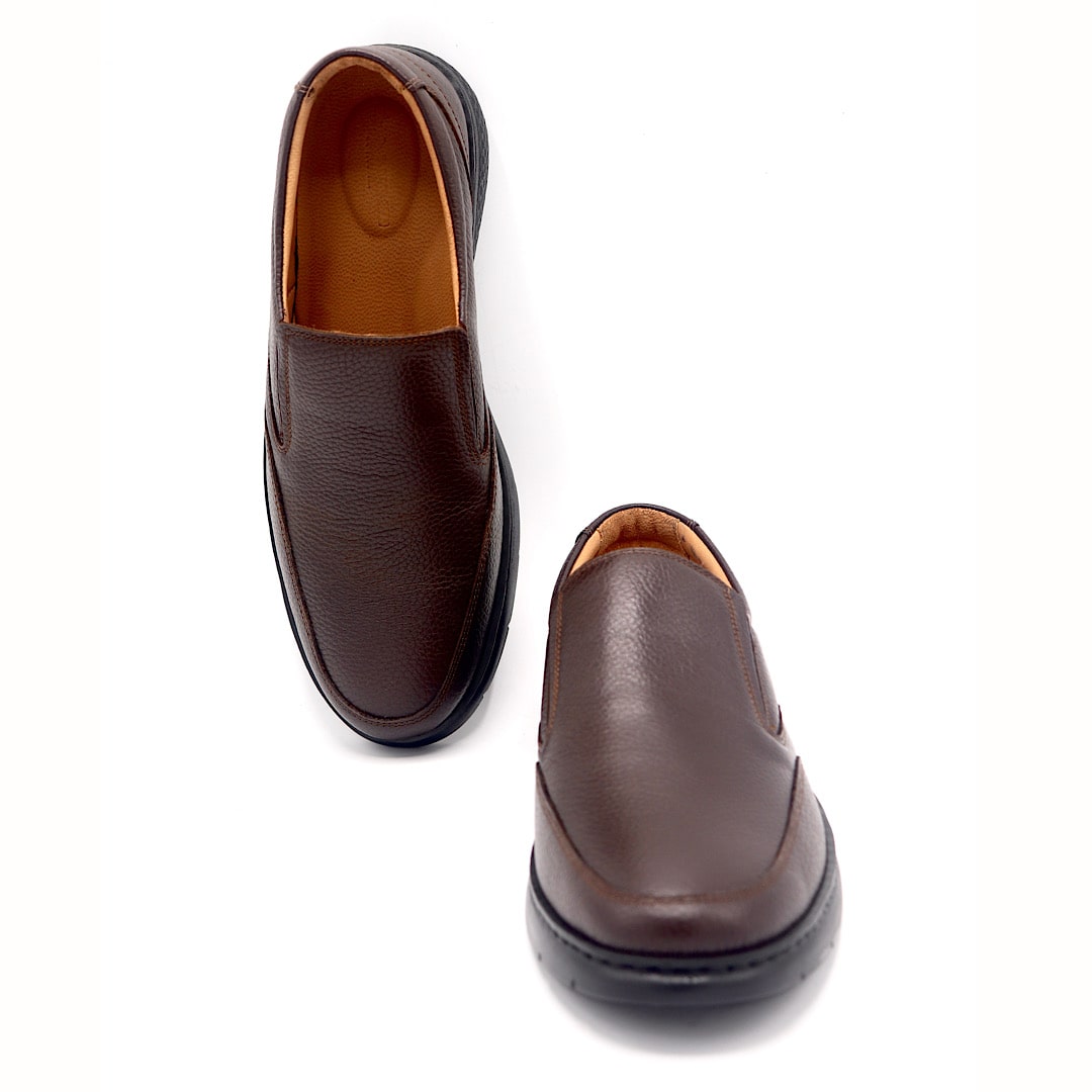 خرید کفش کد 362 بی بند قهوه ای با کیفیت چرم طبیعی و طراحی سبک