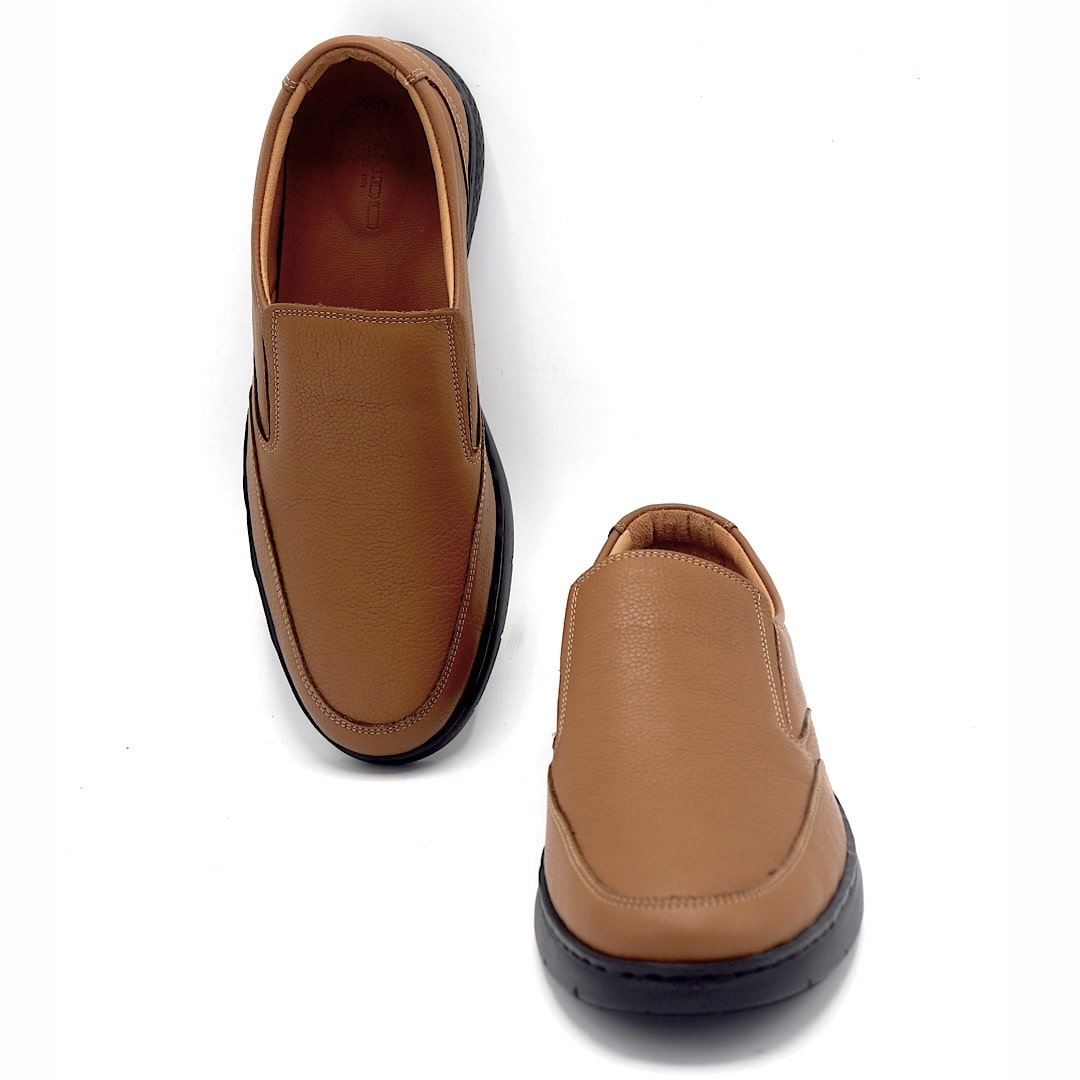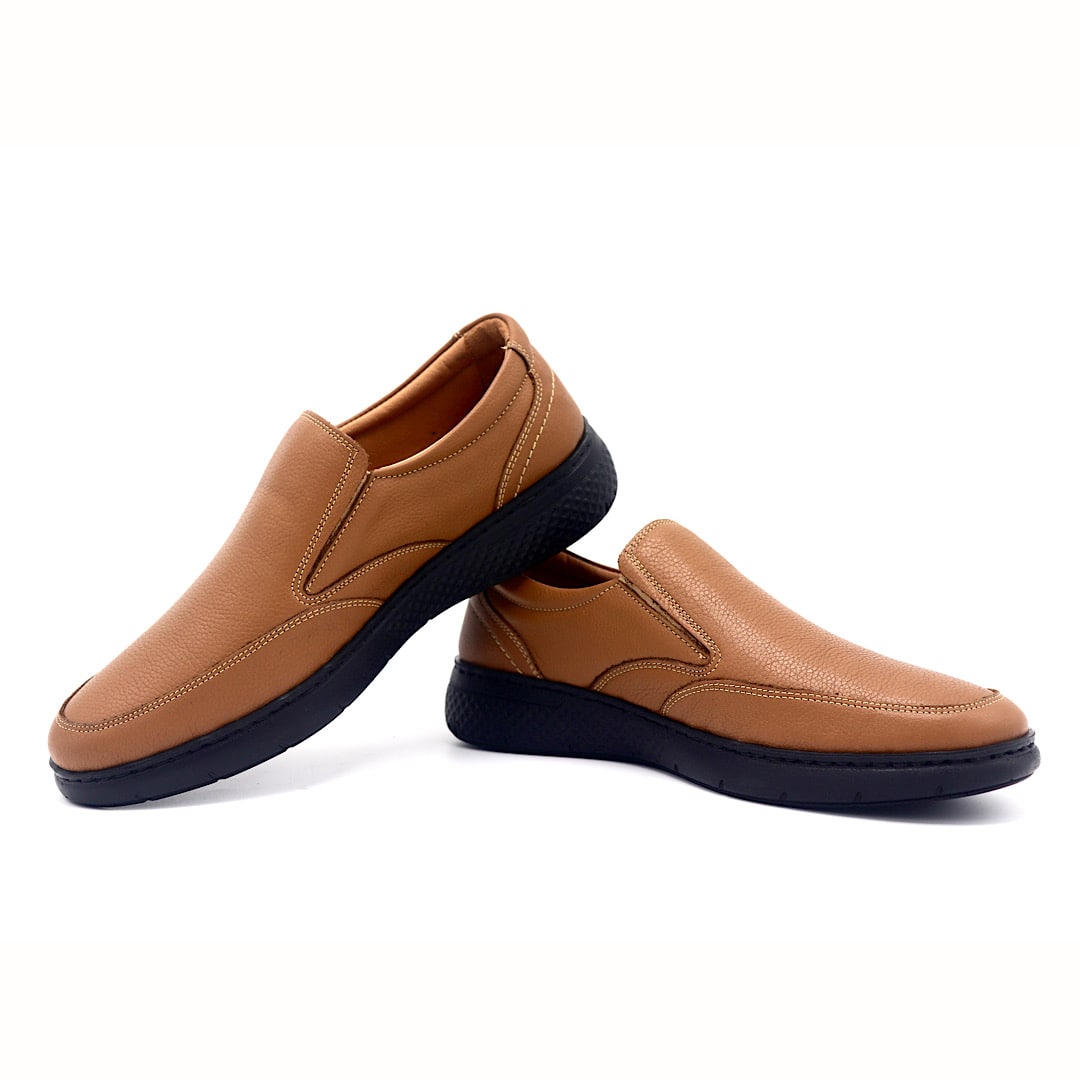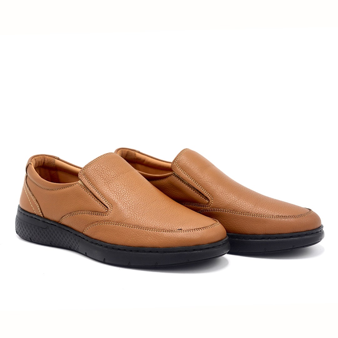 خرید کفش کد 362 بی بند عسلی با طراحی راحت و چرم طبیعی