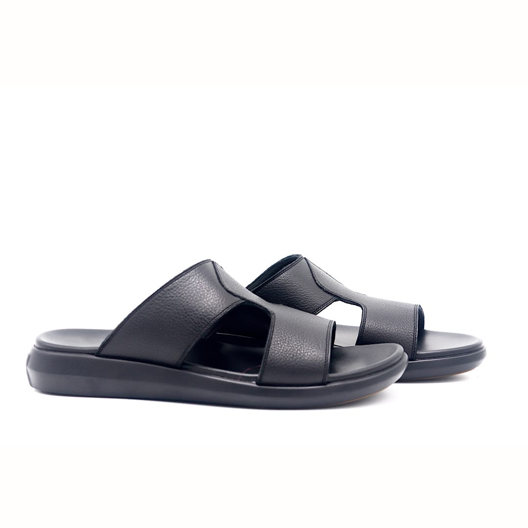 خرید دمپایی مشکی چرم طبیعی گاندو با کیفیت بالا و راحتی عالی